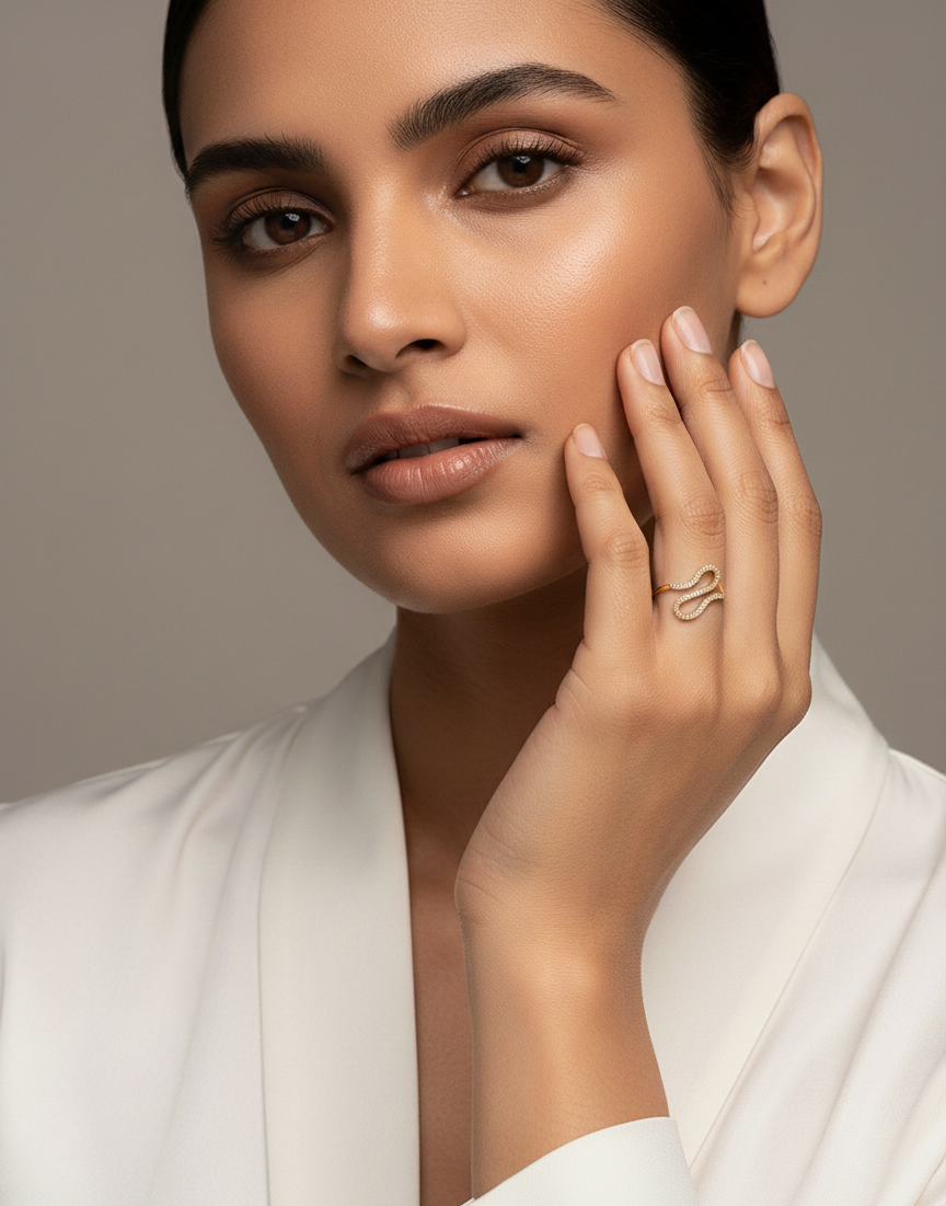Crafted for comfort and versatility, the open adjustable ring ensures a perfect fit while delivering a premium, high-end look. Whether paired with ethnic outfits, western wear, or party ensembles, this ring adds effortless elegance and shine.