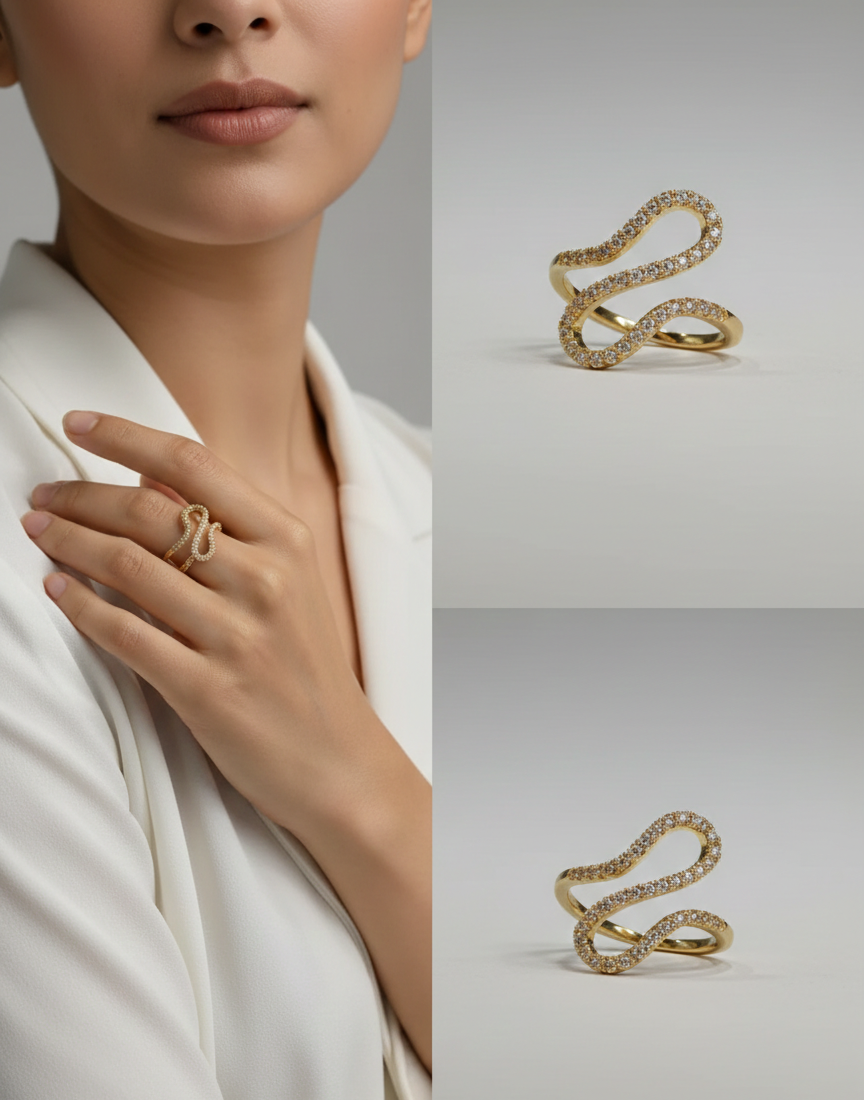 Perfect for parties, festive occasions, weddings, and luxury gifting, this crystal wave ring is ideal for women who love bold yet refined jewelry.